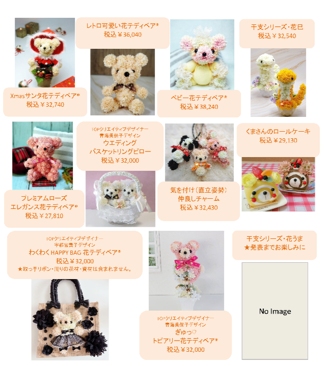 | 取得資格 | 講座修了後 □認定校として『花テディベア®デザイナー養成講座』を開講。 □正会員・ピンク会員の輩出 □花テディベア®デザイナーとして活動 |